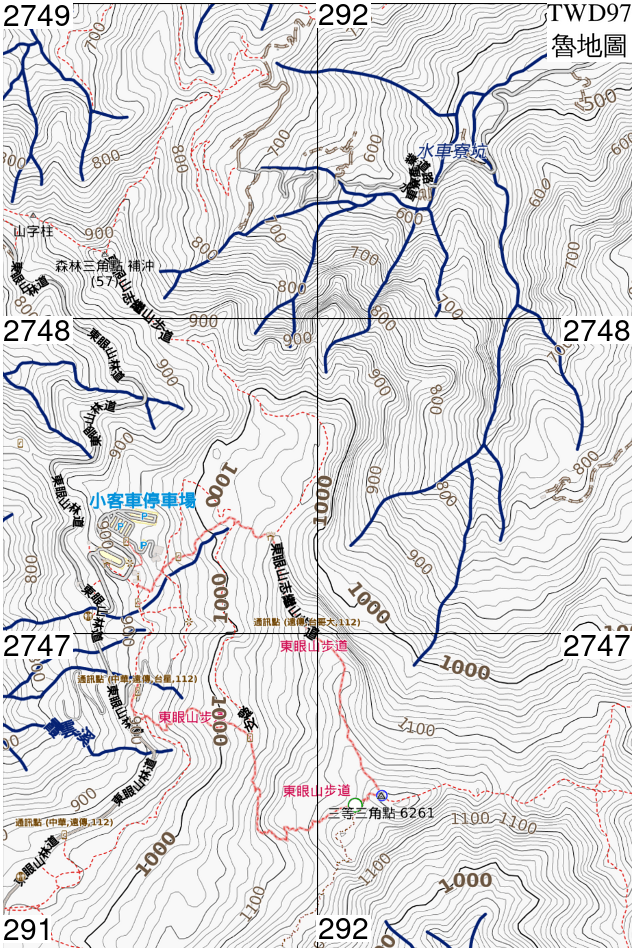 • 本圖左上角座標 X=291000,Y=2749000