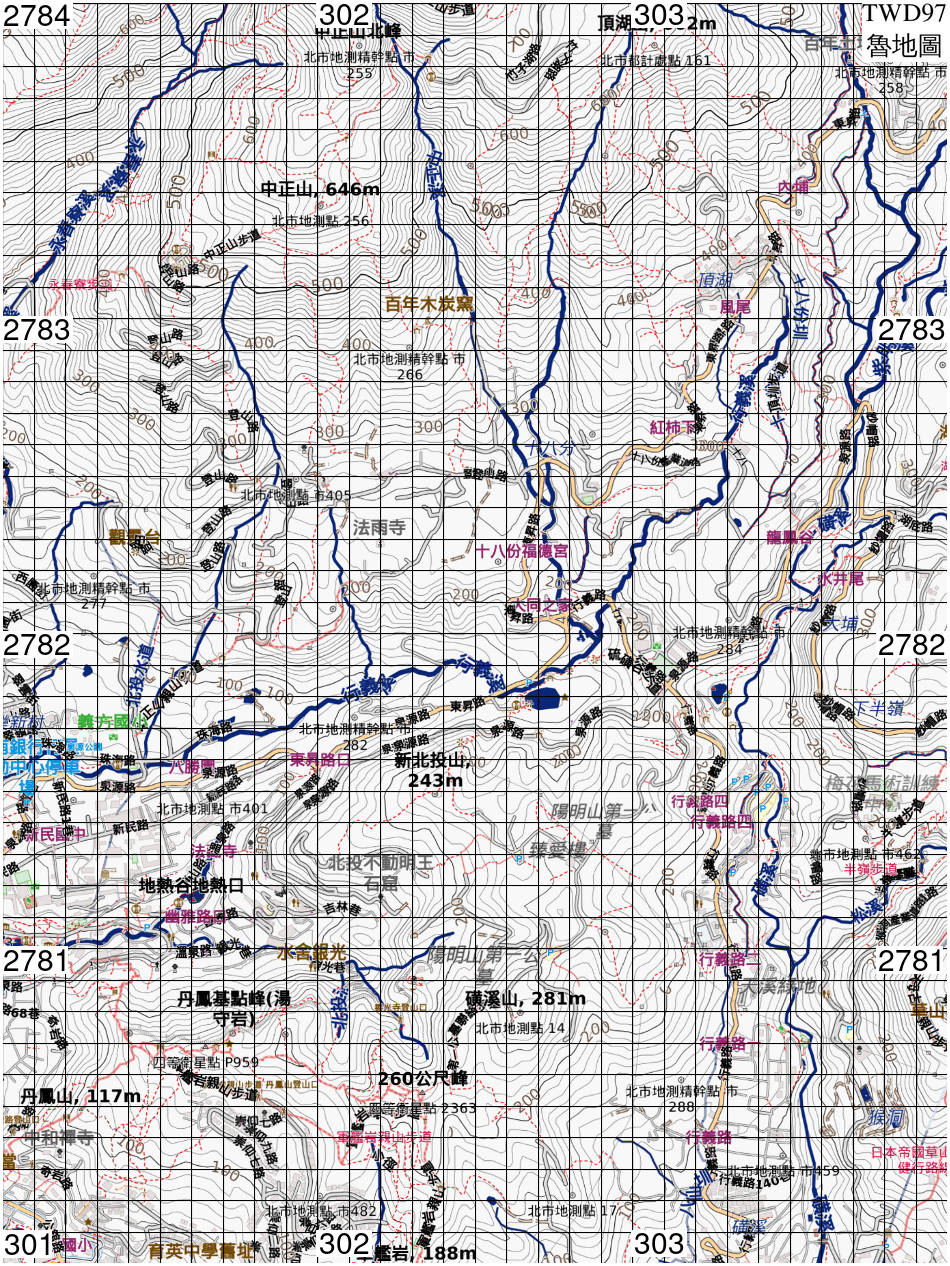 • 本圖左上角座標 X=301000,Y=2784000